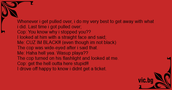 Whenever i get pulled over, i do my very best to get away with what i did. Last time i got pulled over;