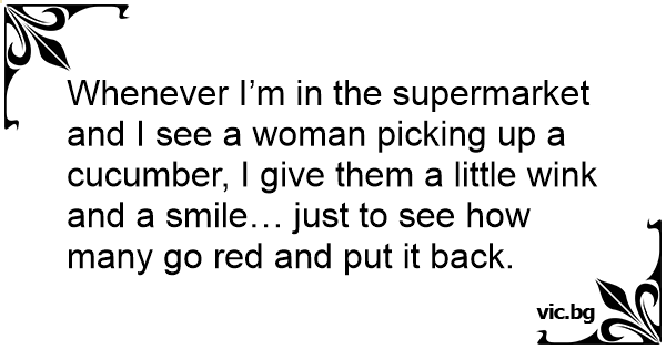 Whenever I’m in the supermarket and I see a woman picking up a cucumber, I give them a little wink and a smile… just to see how many go red and put it back.
