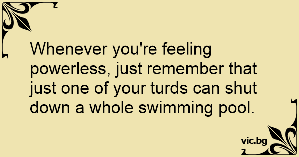 Whenever you're feeling powerless, just remember that just one of your turds can shut down a whole swimming pool.