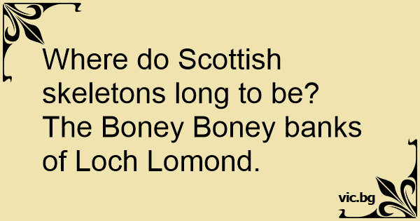 Where do Scottish skeletons long to be? The Boney Boney banks of Loch Lomond.