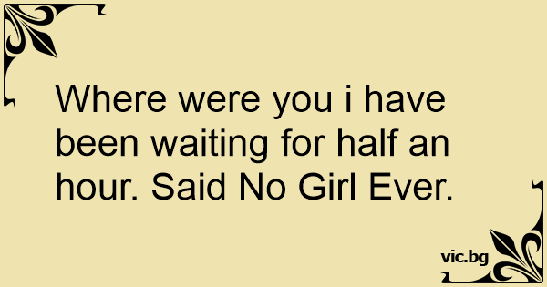 Where were you i have been waiting for half an hour. Said No Girl Ever.