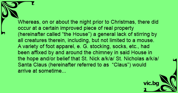 Whereas, on or about the night prior to Christmas, there did occur at a certain improved piece of real property (hereinafter called “the House”) a general lack of stirring by all creatures therein, including, but not limited to a mouse.