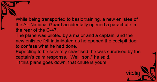 While being transported to basic training, a new enlistee of the Air National Guard accidentally opened a parachute in the rear of the C-47.