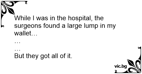 While I was in the hospital, the surgeons found a large lump in my wallet…
