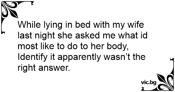 While lying in bed with my wife last night she asked me what id most like to do to her body,