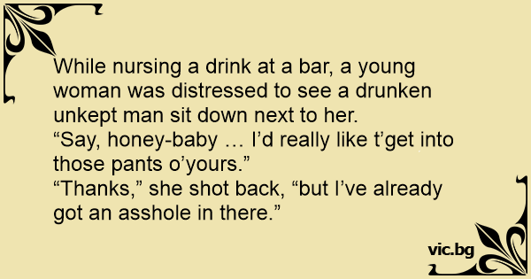 “Thanks,” she shot back, “but I’ve already got an аsshоlе in there.”