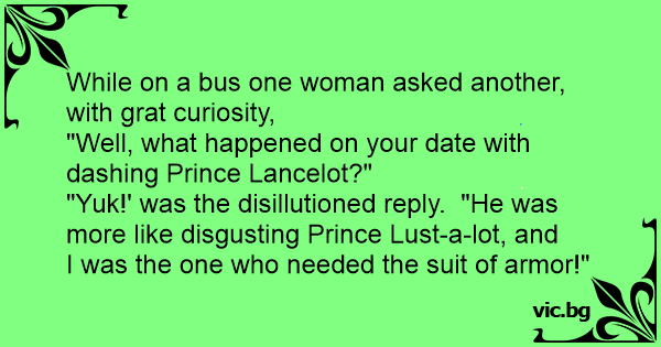 "Well, what happened on your date with dashing Prince Lancelot?"