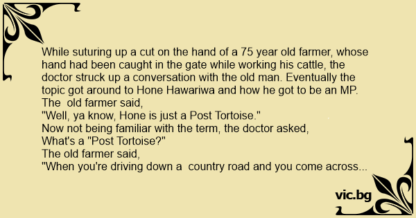 While suturing up a cut on the hand of a 75 year old farmer, whose hand had been caught in the gate while working his cattle, the doctor struck up a conversation with the old man. Eventually the topic got around to Hone Hawariwa and how he got to be an MP.