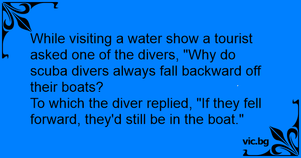 To which the diver replied, "If they fell forward, they'd still be in the boat."