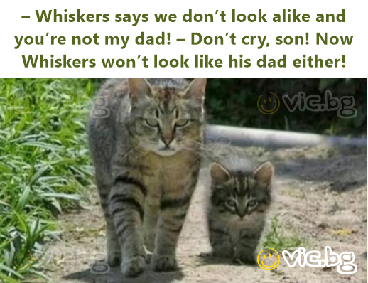 – Мурче вели дека не личиме и ти не си ми татко! – Не плачи, синко! Сега и Мурче нема да личи на својот татко!