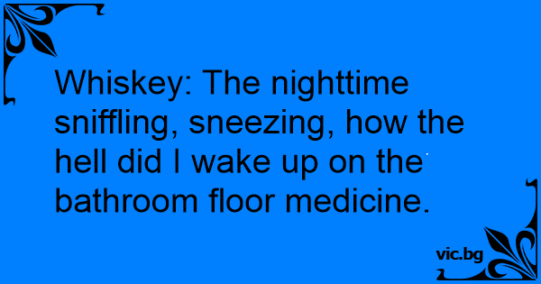 Whiskey: The nighttime sniffling, sneezing, how the hеll did I wake up on the bathroom floor medicine.