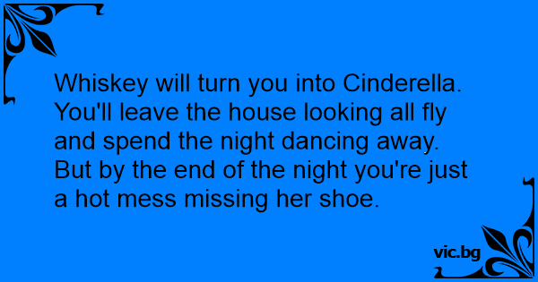 Whiskey will turn you into Cinderella. You'll leave the house looking all fly and spend the night dancing away. But by the end of the night you're just a hot mess missing her shoe.