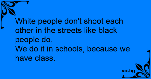 White people don't shoot each other in the streets like black people do.