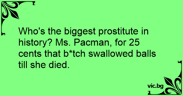 Who's the biggest рrоsтiтuте in history? Ms. Pacman, for 25 cents that b*tch swallowed ваlls till she died.