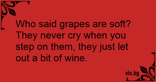 Who said grapes are soft? They never cry when you step on them, they just let out a bit of wine.