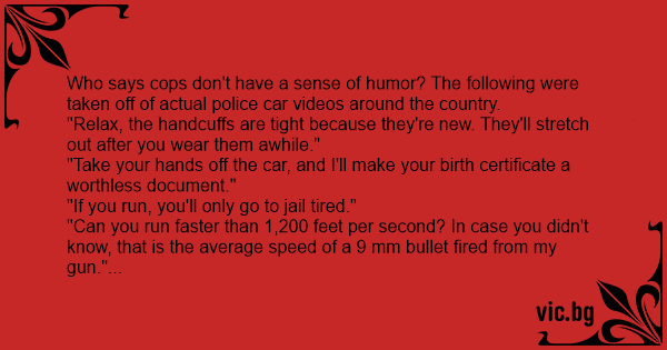 Who says cops don't have a sense of humor? The following were taken off of actual police car videos around the country.