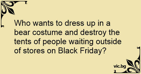 Who wants to dress up in a bear costume and destroy the tents of people waiting outside of stores on Black Friday?