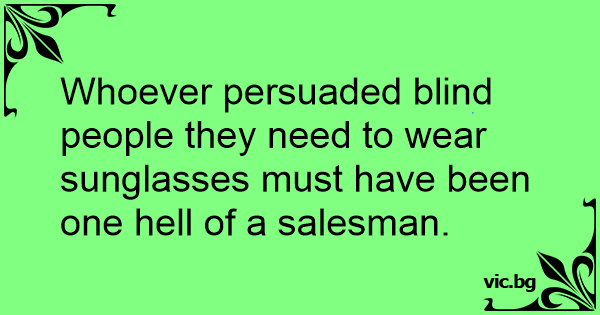 Whoever persuaded blind people they need to wear sunglasses must have been one hеll of a salesman.