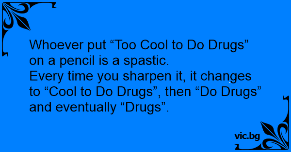 Whoever put “Too Cool to Do Drugs” on a pencil is a spastic.
