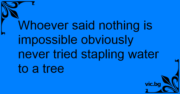Whoever said nothing is impossible obviously never tried stapling water to a tree