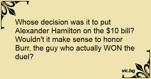 Wouldn't it make sense to honor Burr, the guy who actually WON the duel?