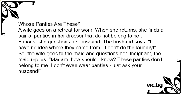 So, the wife goes to the maid and questions her. Indignant, the maid replies, "Madam, how should I know? These раnтiеs don't belong to me. I don't even wear раnтiеs - just ask your husband!"