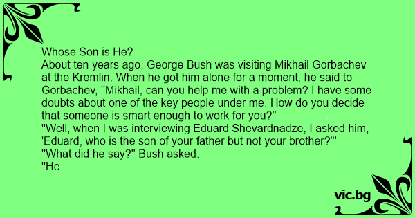 About ten years ago, George Bush was visiting Mikhail Gorbachev at the Kremlin. When he got him alone for a moment, he said to Gorbachev, ''Mikhail, can you help me with a problem? I have some doubts about one of the key people under me. How do you decide that someone is smart enough to work for you?''