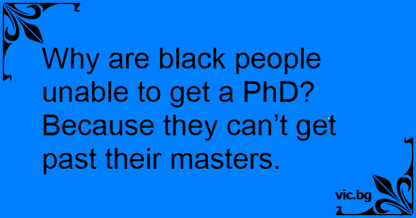 Why are black people unable to get a PhD?<br />Because they can’t get past their masters.