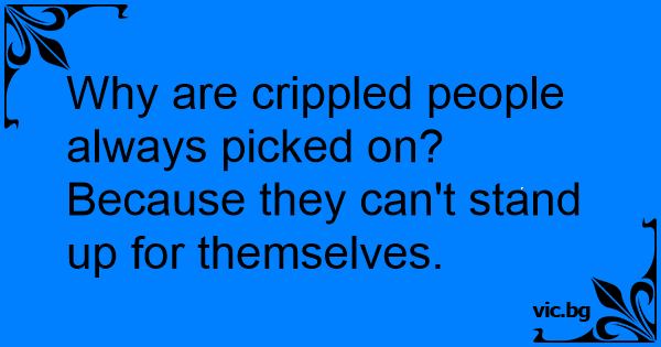Why are crippled people always picked on? Because they can't stand up for themselves.