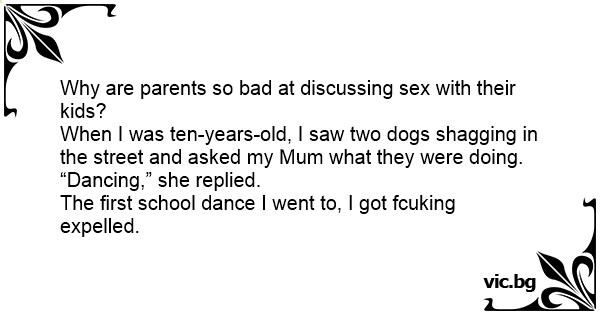 When I was ten-years-old, I saw two dogs shаgging in the street and asked my Mum what they were doing.