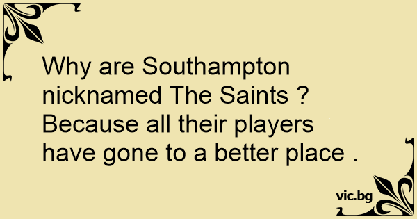 Why are Southampton nicknamed The Saints ?<br />Because all their players have gone to a better place .