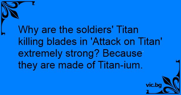 Why are the soldiers' Titan killing blades in 'Attack on Titan' extremely strong? Because they are made of Titan-ium.