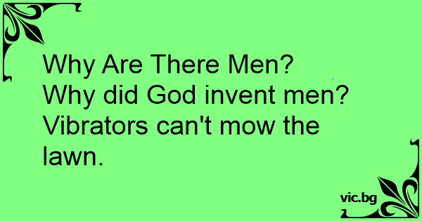 Why Are There Men?<br />Why did God invent men?<br />Vibrators can't mow the lawn.