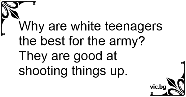 Why are white teenagers the best for the army? They are good at shooting things up.