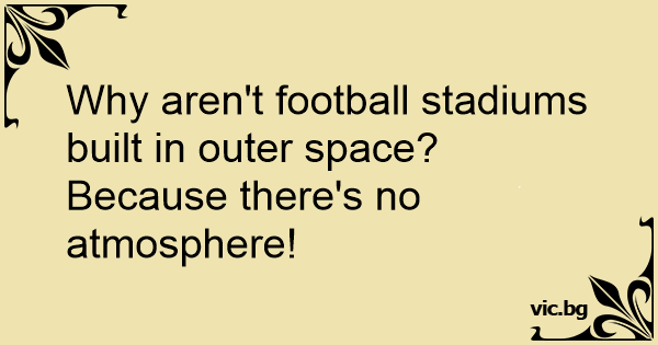 Why aren't football stadiums built in outer space?<br />Because there's no atmosphere!