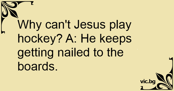 Why can't Jesus play hockey? A: He keeps getting nailed to the boards.