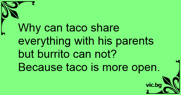 Why can taco share everything with his parents but burrito can not? Because taco is more open.