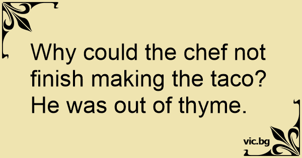 Why could the chef not finish making the taco? He was out of thyme.
