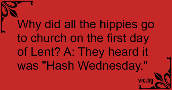 Why did all the hippies go to church on the first day of Lent? A: They heard it was "Hash Wednesday."