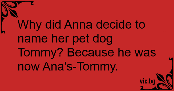 Why did Anna decide to name her pet dog Tommy? Because he was now Ana's-Tommy.