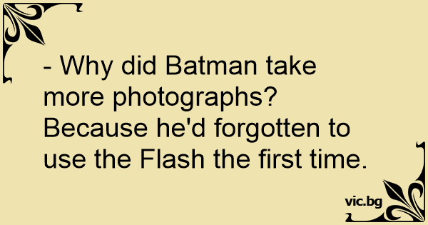 - Why did Batman take more photographs? Because he'd forgotten to use the Flash the first time.
