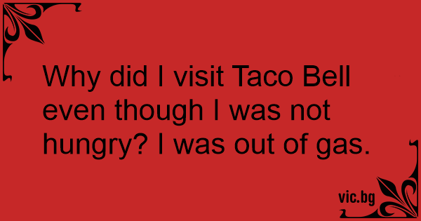Why did I visit Taco Веll even though I was not hungry? I was out of gas.
