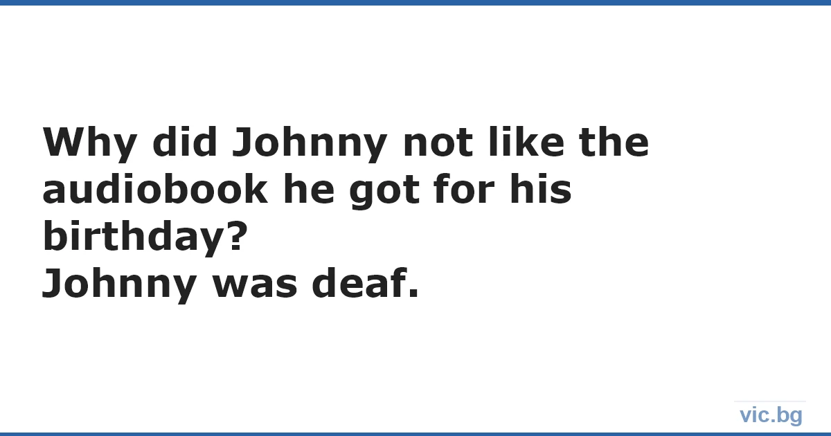 Why did Johnny not like the audiobook he got for his birthday?<br />Johnny was deaf.