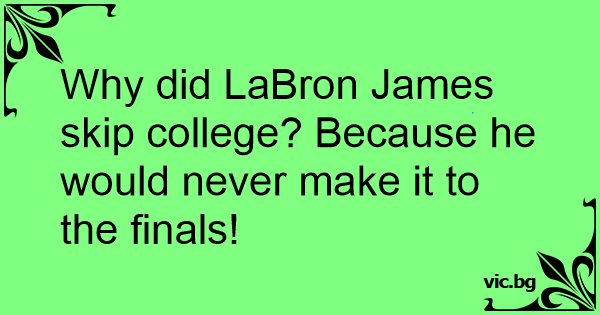 Why did LaBron James skip college? Because he would never make it to the finals!