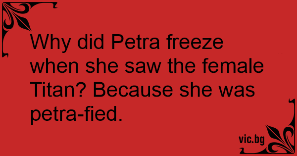 Why did Petra freeze when she saw the female Titan? Because she was petra-fied.