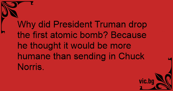 Why did President Truman drop the first atomic bomb? Because he thought it would be more humane than sending in Chuck Norris.