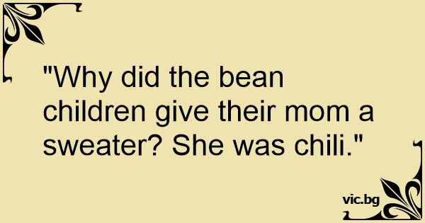 "Why did the bean children give their mom a sweater? She was chili."