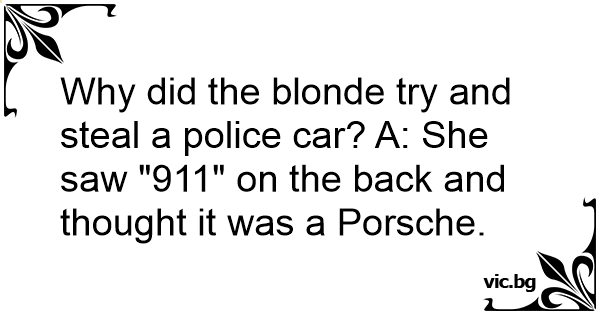 Why did the blonde try and steal a police car? A: She saw "911" on the back and thought it was a Porsche.