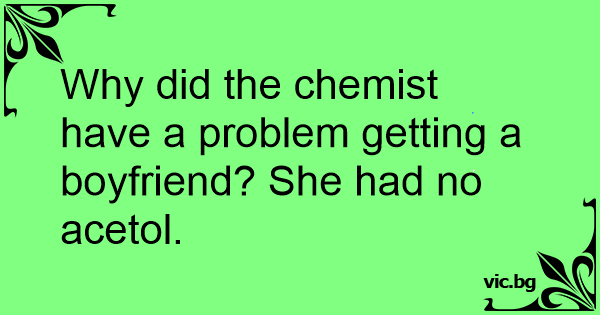 Why did the chemist have a problem getting a boyfriend? She had no acetol.