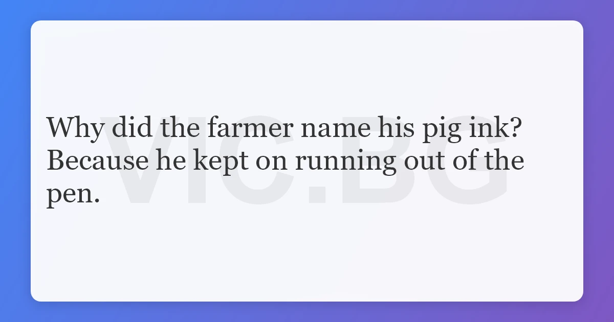 Why did the farmer name his pig ink? Because he kept on running out of the pen.